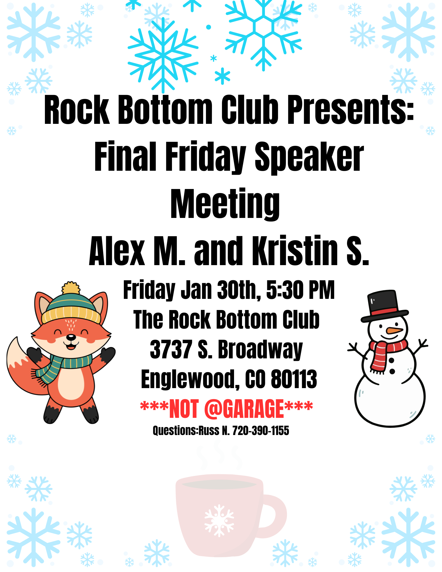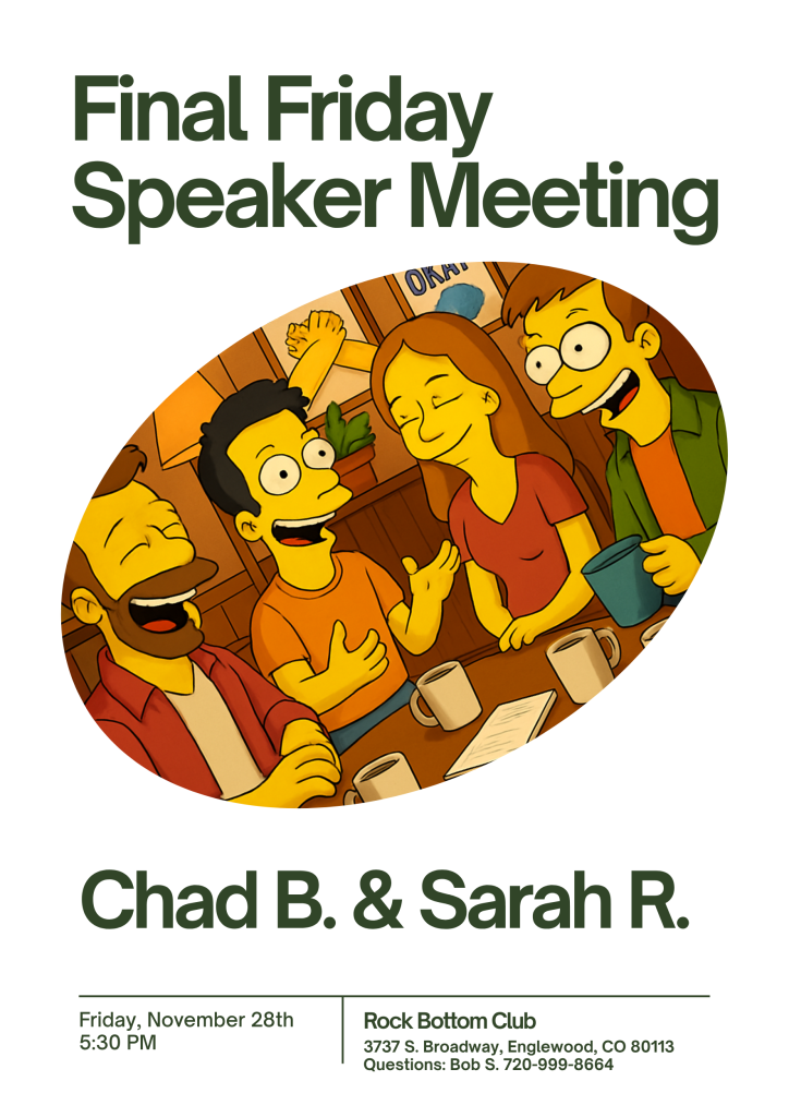 Monthly, on the last Friday of the month we host “Final Friday” , a speaker meeting at our club. It starts at 5:30pm and lasts an hour.